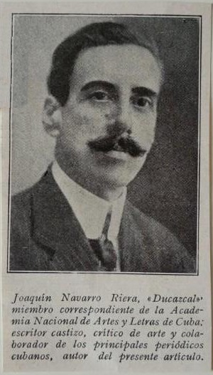 Joaquín Navarro Riera, Ducazcal nació en Santiago de Cuba el 28 de junio de 1872 y murió en La Habana el 12 de diciembre de 1950, a los 78 años. De esta última fecha se conmemoran ahora tres cuartos de siglo.