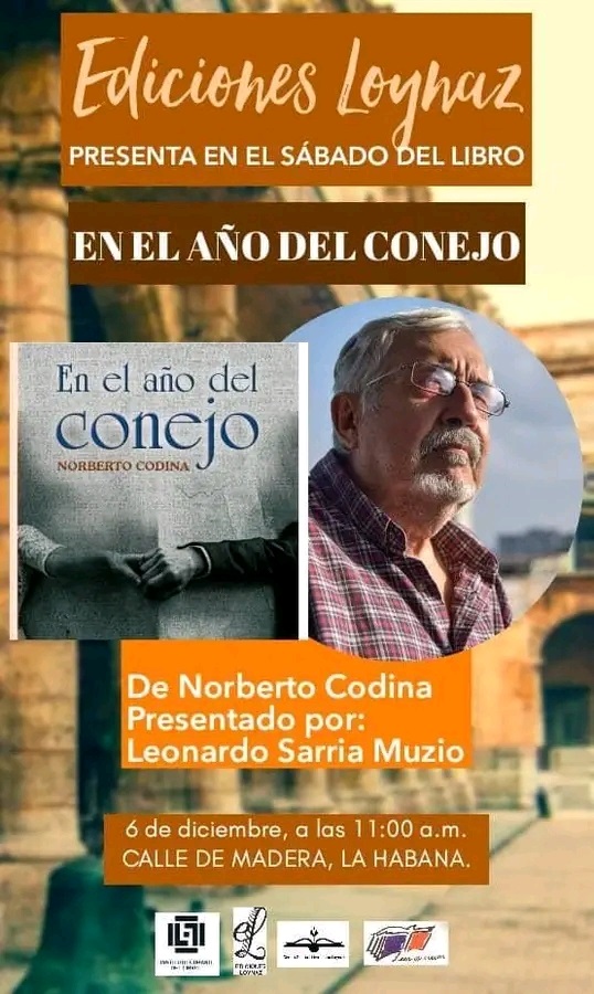 Ediciones Loynaz presenta en el Sábado del Libro este 6 de diciembre, El año del conejo, de Norberto Codina, presentado por Leonardo Sarría Muzio. La cita es a las 11:00 a.m. en la Calle de Madera.