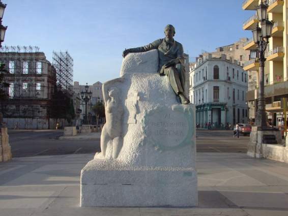 Obra del español Ramón Mateu y realizada por gestiones de Piedad Zenea de Bobadilla —hija del poeta—, la estatua fue creada en la segunda decena del siglo XX y permanece desde entonces en el mismo lugar: en el extremo más cercano al mar del Paseo del Prado de La Habana.